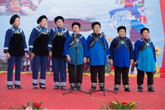 扁坡村“三月三”随着社会的进步,活动的重心逐渐向民族文化等歌舞表演形式转移,但布依族从古至今都是一个注重农耕文明的民族,他们对于大地的热爱,无以言表却在歌舞中流露着民族的敬仰之情。阿婆们穿着质朴的民族服饰,深蓝的衣裙衬得她们庄重又从容,唱着那布依老歌,仿佛家中的老奶奶坐在长椅上温柔地向孩子们诉说过去的种种。
