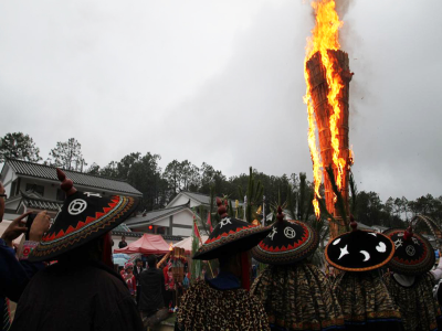 图为楚雄市板凳山举办原生态火把节