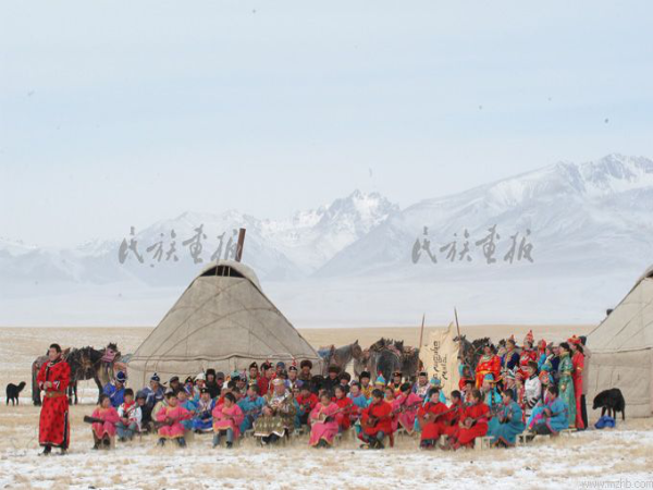 牧民在演唱蒙古族“拜年文化”之一蒙古族民歌长调