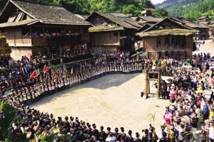 2014年7月18日,贵州省黎平县双江镇黄岗侗寨侗族同胞举行了一年一度的“喊天节”。“喊天节”又称“祭天节”或“求雨节”,每年农历六月十五日举行。当天,侗族同胞开展了祭萨、 祭天、捕鱼比赛、鼓楼对歌等活动。 王炳真摄影报道