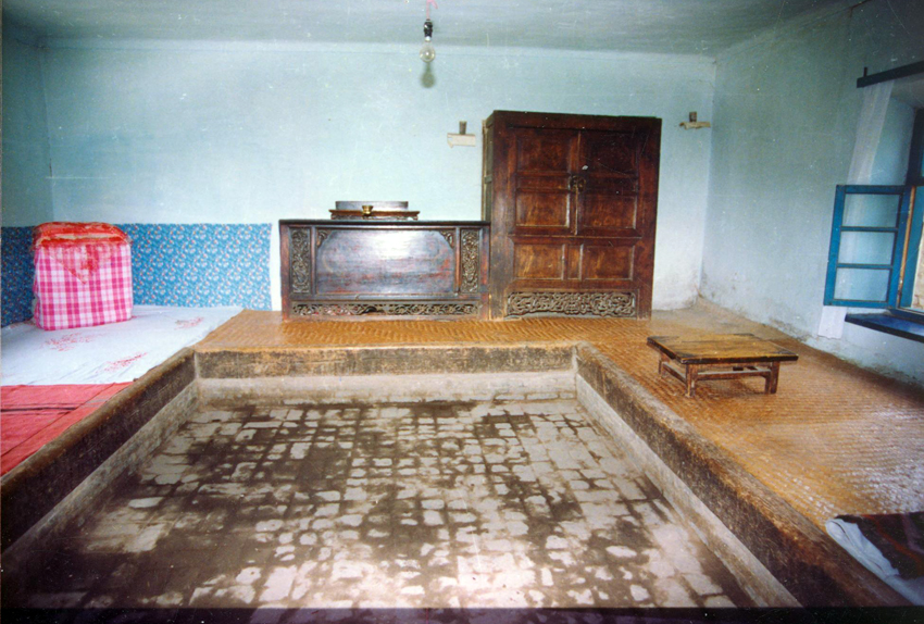 锡伯族生活在高纬度地区,冬季低温严寒,因此锡伯人家多会在室内建造火炕,火炕高60—70厘米,造法很特殊,由五个烟道组成,烟道互相连通。新中国成立前后,随着房屋形式的改革,大炕也被改造,渐渐只打一面炕(或南或北,以北为多)。 炕上又放有特制的长方形木具称之为“吉伯浑塔图库”(被柜或炕柜)。房屋的中间屋子有个过道,过道里屋是厨房,筑有两个锅台。锅台比里屋内的炕低,连着锅台修有小炕,炕和锅台中间隔有30厘米左右高的“古堆”(小隔墙)。