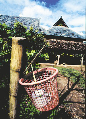 村长岩化告诉我,村里岩约的老母亲死了。门口挂的东西叫“喃送派”,是用来驱赶沾在身上的鬼气的。
