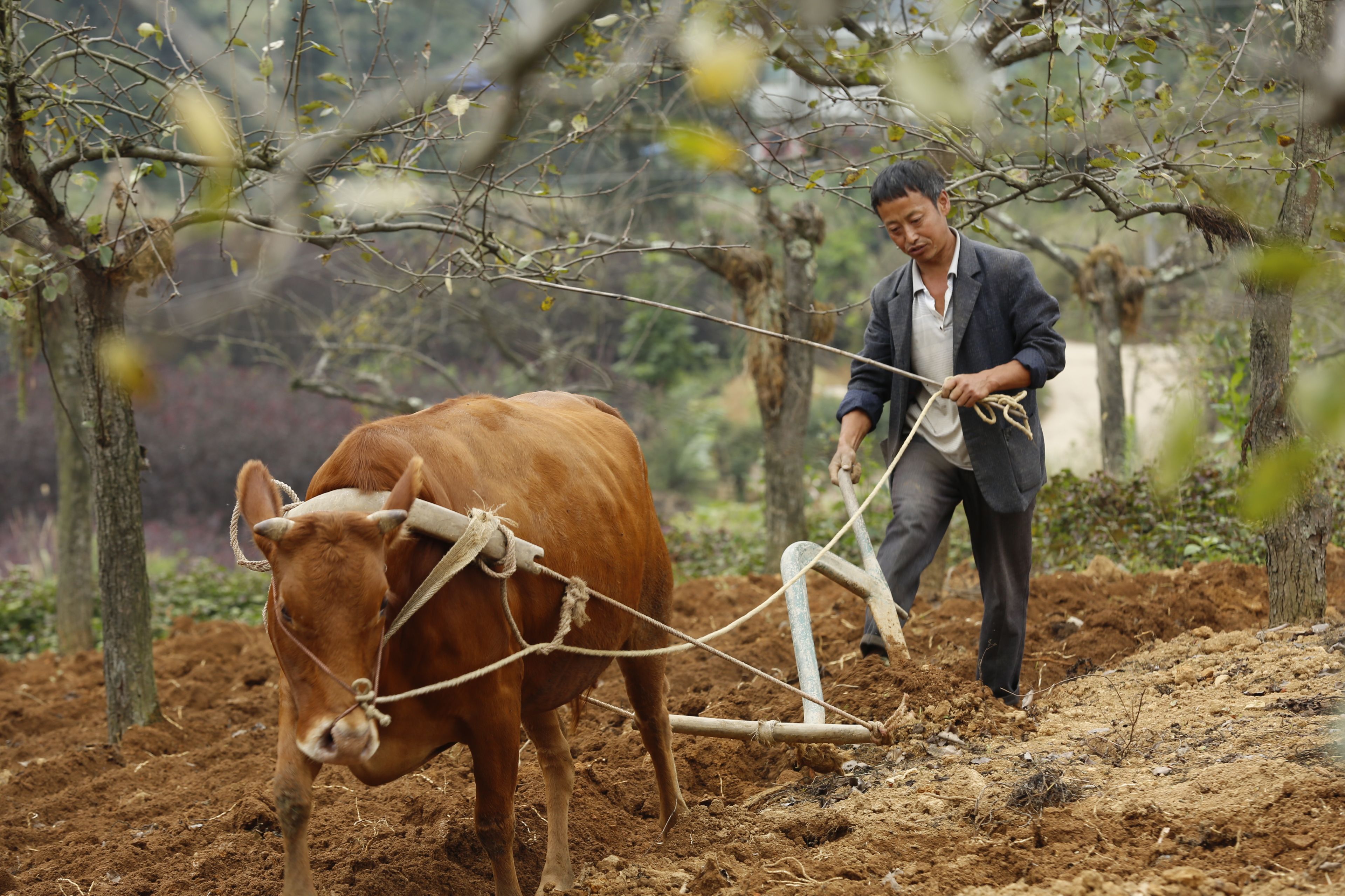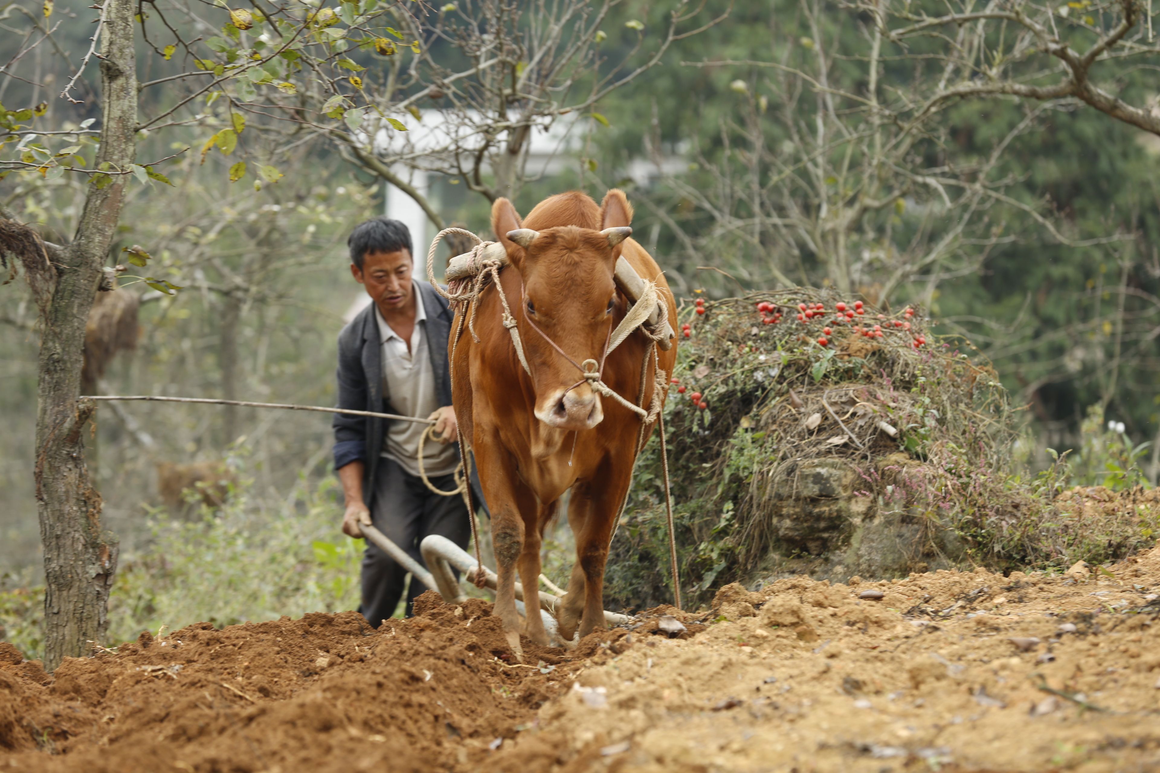 图片说明:贵州贵阳苗族农作物种植-牛耕田