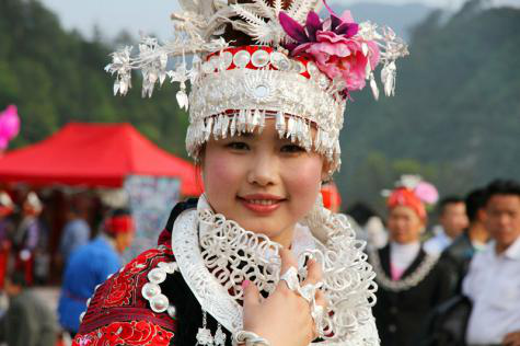 图9 头戴银花帽的苗族姑娘(摄影:雷安平)