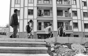 教师杨绍书和学生从新居前走过。欧东衢摄