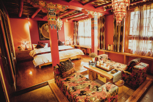 民宿房间虽然狭小,但装饰得很精心,处处体现了藏族文化元素。庄严肃穆的佛像、西藏天高地阔的自然美景时刻提醒着人们,现在身处离天最近的地方。