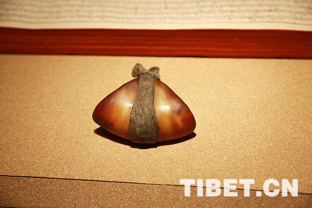图为把牦牛蹄掏空制作而成的藏药袋
