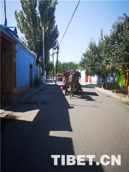 目前,喀赞其仍保留着一定数量的文物古迹,包括自治区级文物保护单位1个(陕西回族大寺),市级文物保护单位7个,另有12处清真寺建筑。图为具有当地特色的临街蓝色大门。