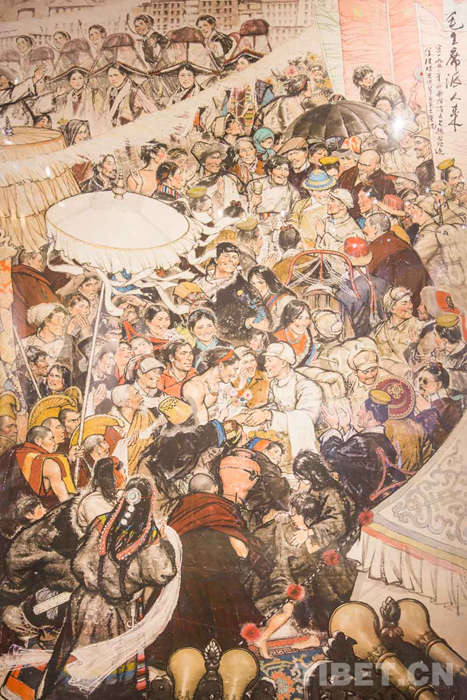 鉴赏展现场,不少前来参观的画家都是韩书力的学生或在一定时期曾受其教导。“1973年,我在西藏自治区展览馆见到了韩书力老师,第一次见面我就拜了师。我们一起下乡,我就给他当导游和翻译。30几年来,我一直在学习韩老师的绘画技法,到现在还是他的学生。韩老师创作《毛主席派人来》时,我就跟在旁边学习。学到了一些创作独幅作品的技巧和手法,让我受用至今。”西藏青年画家计美赤列说。