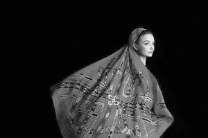 星空密码丝巾上的纹样图形是和上古时代的文明联系在一起的。传说中的“洛书”即“九宫图”的原型,就保留在古老的苗绣服装上。中国造型文明的起始源于星相学的认知。关于这些传说,在古老的苗绣中找到了印证与答案。设计沿用古老绣片上保留下来的这些神秘符号,通过再演绎,让古老的智慧穿越时空,熠熠生辉。