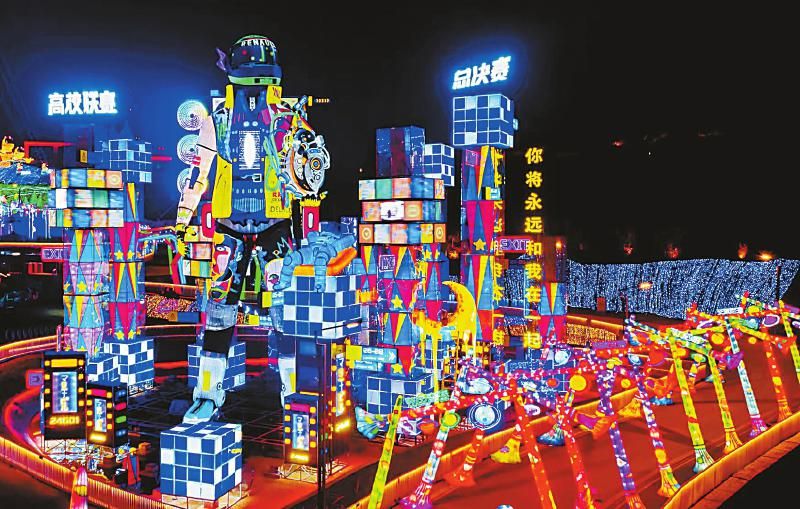 2月22日晚,第27届自贡国际恐龙灯会从“云”上转为线下,在中华彩灯大世界璀璨绽放。