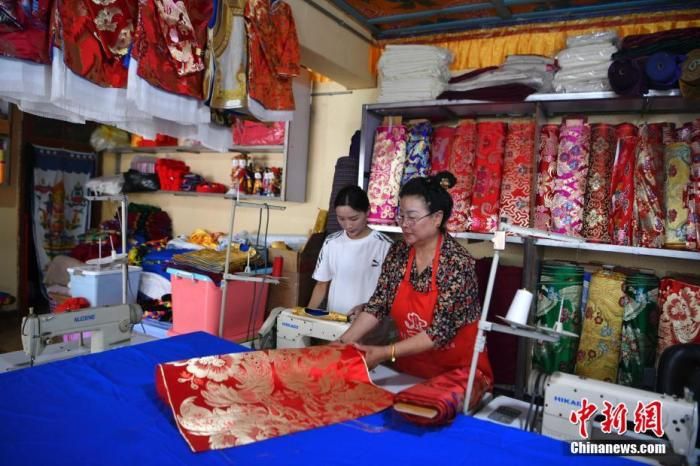 如今,年轻的边宗正式继承了母亲提美的衣钵,成为藏服制作传承人。边宗一边缝制衣服一边对记者说,藏服工序繁杂,一会儿要手工,一会儿又要裁剪,一会儿又机器缝……
