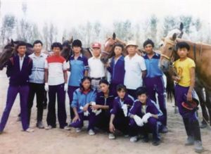 1986年,西藏有了自己专业的马术队(后排左四为现任西藏竞技马术队领队措东,站立者右二为现任西藏竞技马术队教练单增)。