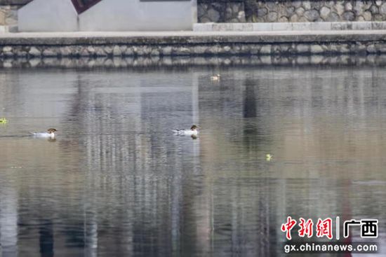 广西荔浦市荔江流域首次发现国家一级保护动物:中华秋沙鸭。张德林 摄