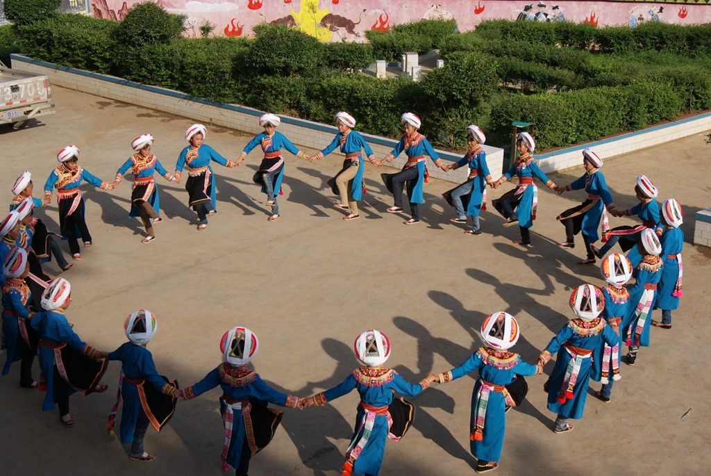 彝族“姑娘出嫁舞”是婚嫁习俗不可或缺的礼仪性舞蹈。姑娘出家前夜,亲戚和寨邻老幼都要到姑娘家表示祝贺。老人们在屋内就坐,姑娘们唱歌向老人们敬酒。老人们唱起酒礼歌、苦情歌,畅谈彝族的历史。触景生情,即将出嫁的姑娘与父母难分难舍,泣不成声,姑娘们见此情景,也唱起酒礼歌,其意是“不要哭,哭母难过,哭父也难过,姑娘办喜酒,我们跳舞来祝贺”,接着,姑娘们就拉出新娘,围着酒坛,手牵手翩翩起舞,边跳边喝咂酒,男女老少喜气洋洋、欢歌笑语气氛欢腾热烈,其乐融融,甚至通宵达旦,这就是“姑娘出嫁舞”世代相传的表演风俗。