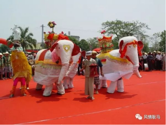 白象舞是云南耿马县傣族群众盛行跳的一种民间舞蹈,也是耿马特有的舞种,白象舞属双人拟兽舞,十分讲究舞者之间的默契配合。舞蹈步伐稳健、有力。舞蹈基本动作有:“原蹈步”、“前后跳”、“左右跳”、“鼻走”等。经过民间艺人长期不断改进,而今,耿马白象舞已经形成了一整套基本舞步,表演者借助白象道具模仿大象动作,把笨拙的大象表现得活泼可爱、步伐稳健、韵律十足。
