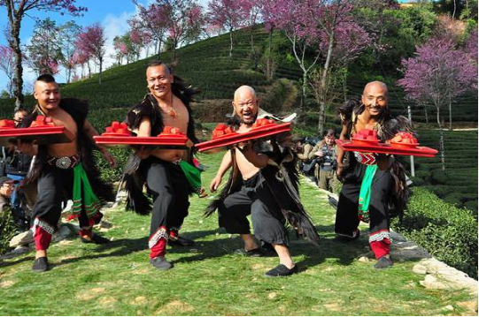 南涧“彝族跳菜”主要有“宴席跳菜”和“舞台跳菜”两大类。“宴席跳菜”也称“席间跳菜”或“实地跳菜”,是当地彝族群众在结婚庆典、新房落成、迎接贵宾、给老人祝寿等重大喜庆场合,宴请宾客,为增加喜庆气氛而跳菜,讲究“吃着并快乐着”。另一类是“舞台跳菜”,根据表演地点或舞台大小又分为“舞台跳菜”和“广场跳菜”。“舞台跳菜”即舞台上表演的跳菜,演员通常在20人左右,舞蹈动作粗犷豪放、刚健有力,声音高亢明亮。而“广场跳菜”演员少则几十人,多则可达几百人,气势恢宏、整齐和谐。