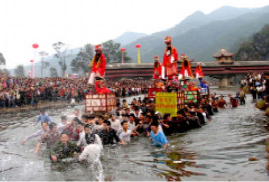 走古事,则被称为闽西客家人的 " 狂欢节 ",是罗坊人几百年来绵延相传的元宵文化活动,表达客家先民对风调雨顺、国泰民安的祈愿。
