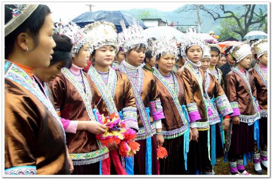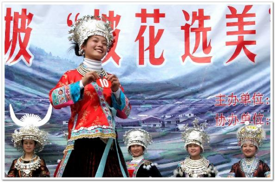 (图注:坡会上盛装的苗族达配)