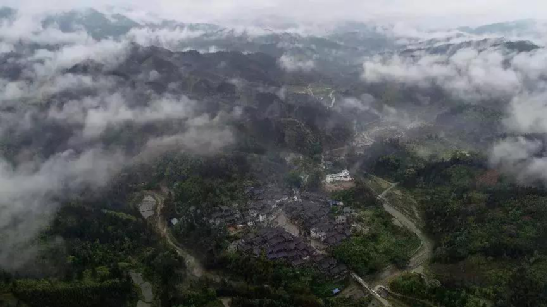 4月14日,无人机航拍的三江侗族自治县洋溪乡高露村中寨屯美景