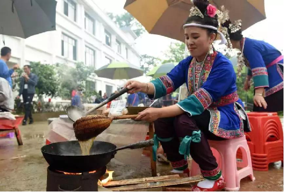 打油茶是侗族特有的一种饮食习惯和待客礼仪,起源于唐代,侗家油茶用糯米、茶油、茶叶、食盐等原料精制而成,具有香、酥、甜等特点,能提神醒脑助消化,已于2014年列入广西区级非遗名录。
