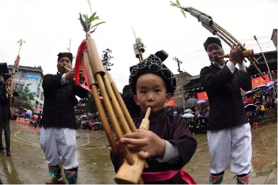小孩在吹芦笙
