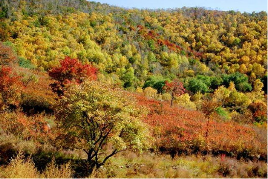 沟谷内树木蓊郁,植物种类繁多,春夏草木争荣、繁花似锦,秋季丹叶红果,还有各种蕨类植物,碧绿清新,更增添了沟谷景观的幽静、秀美。