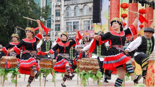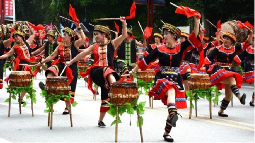 粮食得到了丰收,鼓成了瑶民的功臣,成了瑶民心中的神。后来这被瑶家人戏称为“赶猴鼓”的打鼓方式就慢慢演变成为各大小节日的表演节目。于是赶猴鼓成了瑶民住在山中的神鼓,流传至今便有了今日的瑶山鼓。