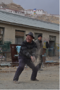 江孜这家工厂叫“铁木家具厂”。厂长正在与员工一起沉浸于“打石头”游戏带来的快乐之中。厂长告诉记者:“如今,在江孜,以及西藏其他城市里,基本上看不到还有人玩这种游戏。只有乡下在逢年过节的时候,人们才会玩这种游戏。而铁木家具厂的工人之所以还玩‘打石头’,是因为这项游戏是厂里保持了30多年的传统。”