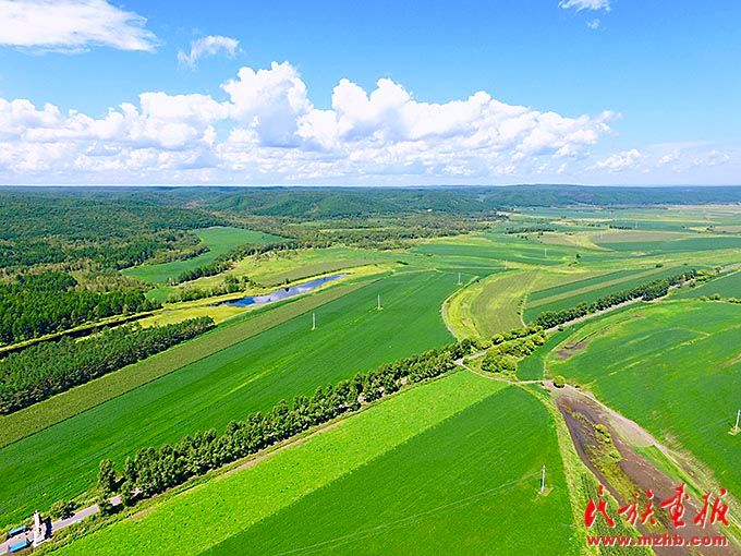 初夏的内蒙古自治区锡林郭勒草原开始返青泛绿、天辽地阔。在弯弯曲曲的高格斯台河流过的地方,有一座宛如田...