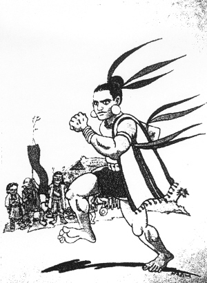 台东县卑南乡东兴村部落会所外墙上的射日图。