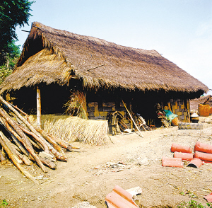 现在,布朗山的布朗族新建的房屋,都采用了以水泥为主的新型建材,砖瓦结构,单设火塘间。