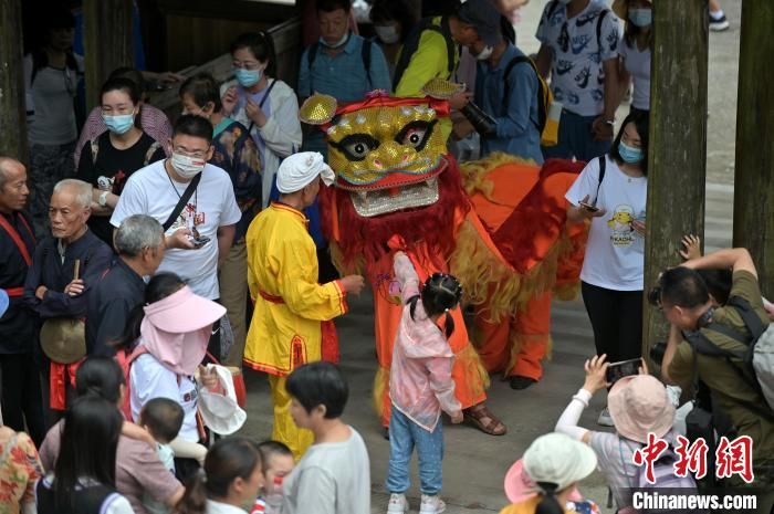 图为游客观赏舞狮。 俞靖 摄