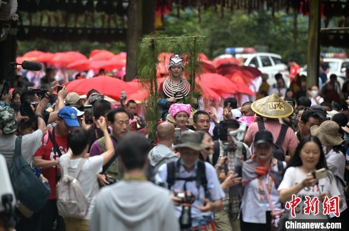 图为村民抬“秧母”游走田间。 俞靖 摄